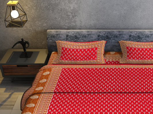Rajasthani Jaipuri Traditional Sanganeri 3KaamButi Print 100% Cotton Double Size Bedsheet with Two Pillow Covers