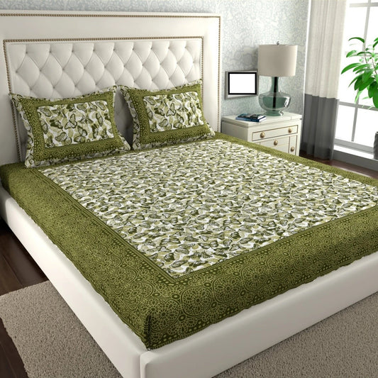 Rajasthani Jaipuri Traditional Sanganeri NewChokda Print 100% Cotton Double Size Bedsheet with Two Pillow Covers