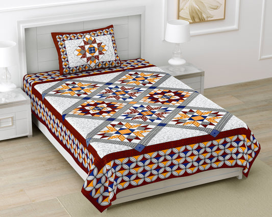 Rajasthani Jaipuri Traditional Sanganeri New Chokda Print 100% Cotton Single Size Bedsheet with one Pillow Covers